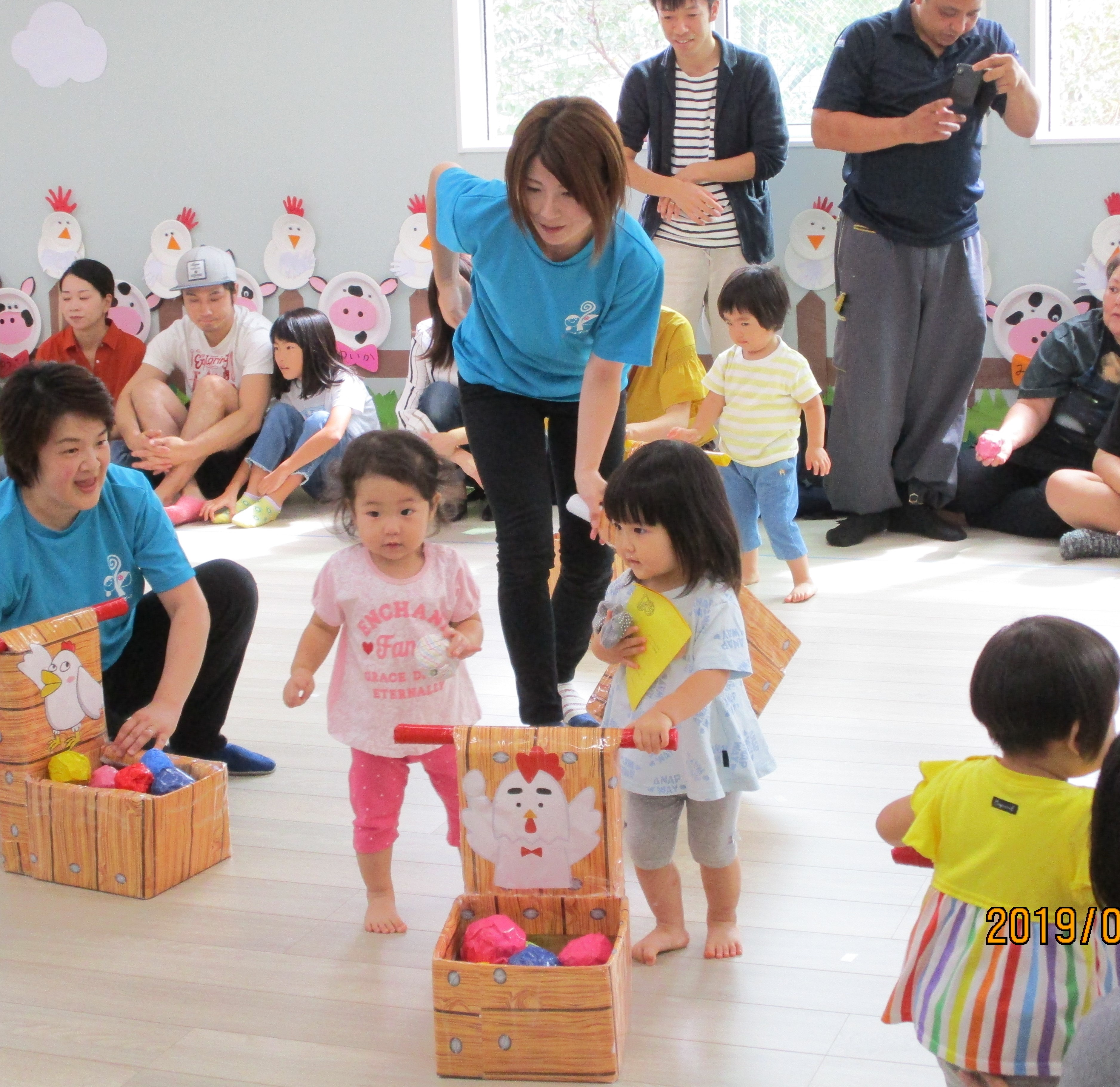 保育園の2階で運動会を行っているので子ども達も緊張することなく元気いっぱいに行えたと思います。