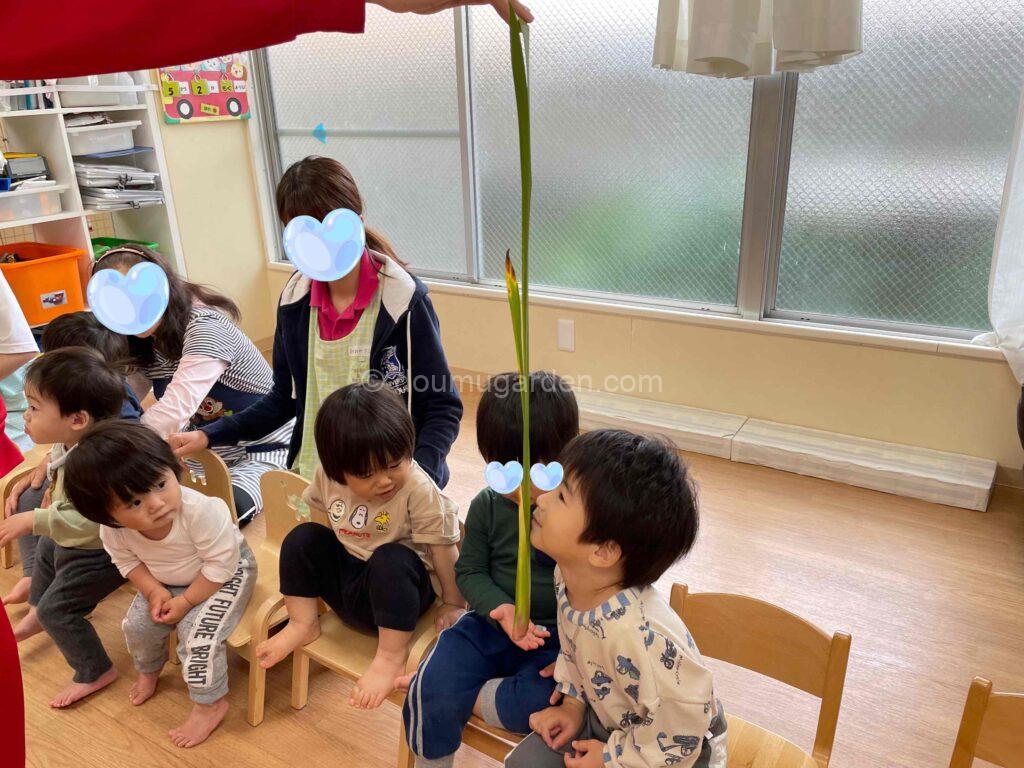 「おっきー」と長さに驚いたり、匂いをたしかめたりしていました(^▽^)しょうぶの葉はお持ち帰り!