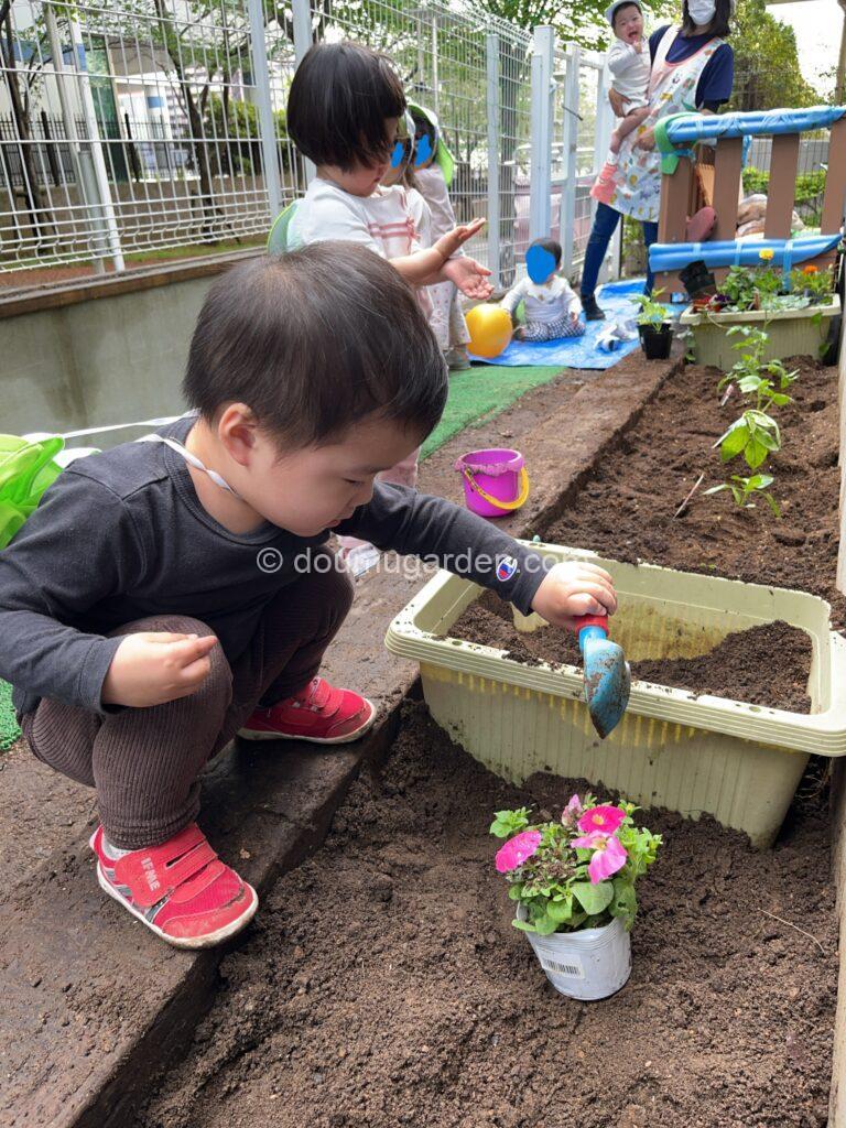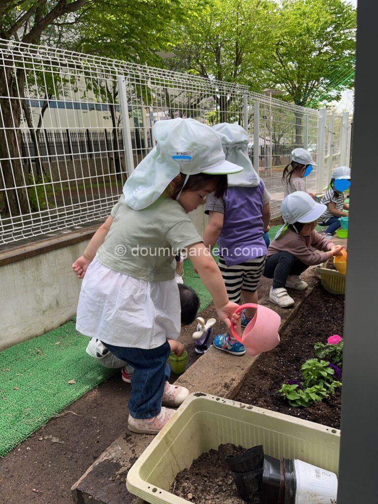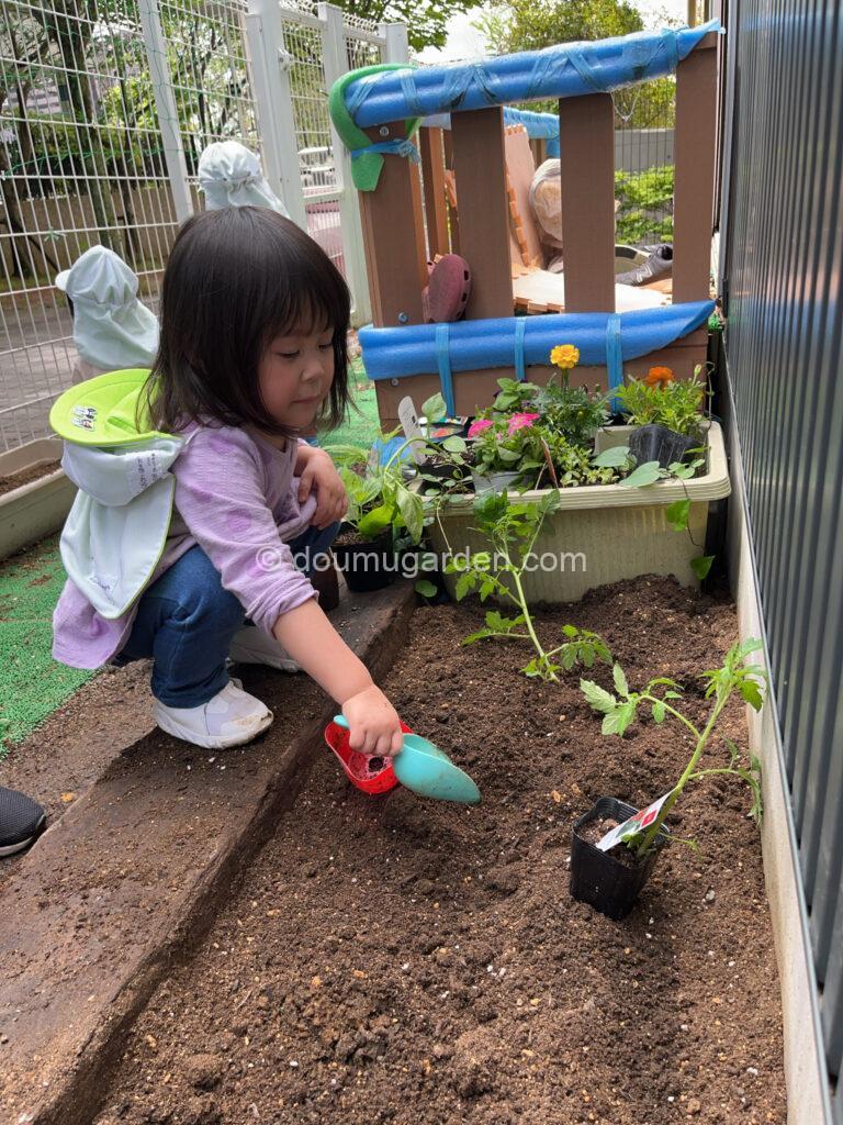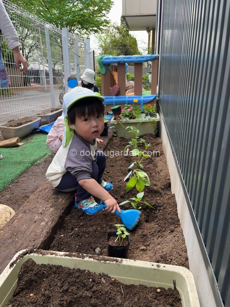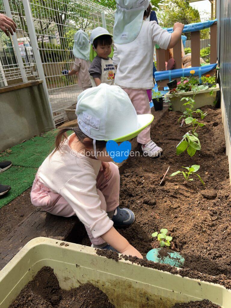 苗を植えた次の日からもみんなで大きくなったかな。と見に行ったり、お水をあげたり・・・