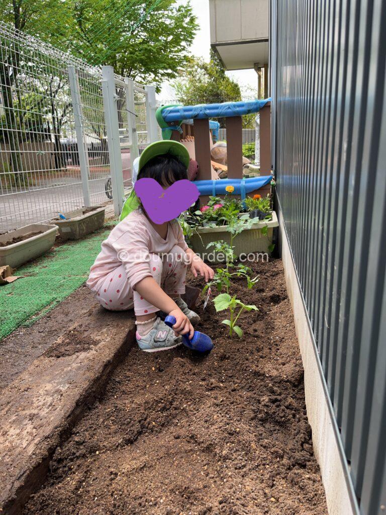 ぞう組のお友達が食育も兼ねて収穫できる野菜をみんなで植えることにしました!!