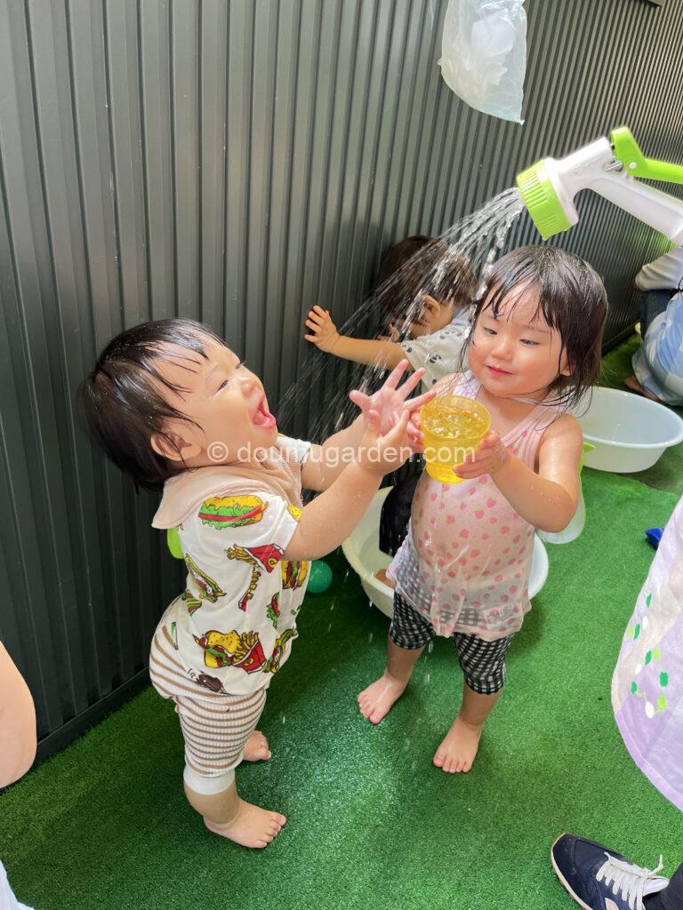 お外で過ごす時間も限られています😣そんな時はみんなの大好きな水遊び!!