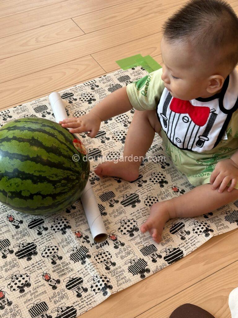 連日の暑さで、外でのスイカわりはやめて、室内で楽しみました♪