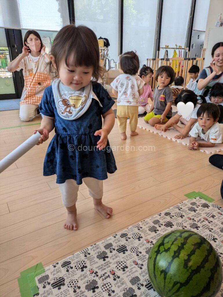 優しく叩くお友だちもいれば、力強く叩くお友だちもいて性格が表れます☺