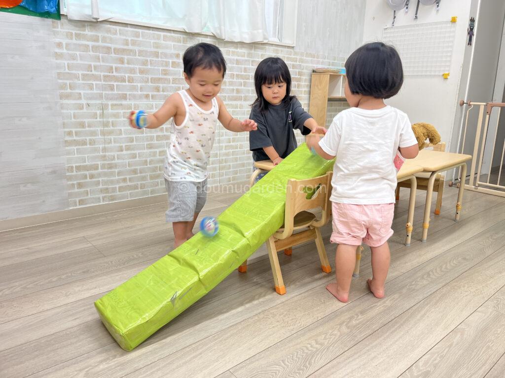 お友だち同士頭を使って考えて、坂道を作ってせーの!!