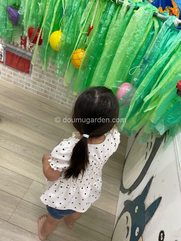 いつもと違った雰囲気に始めは戸惑っていたお友達も‥お祭りが始まると目をキラキラさせて参加していました😊フルーツ狩りでは、果物が草の中に隠れていて・・・