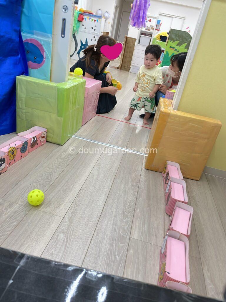 コロコロ転がすボール転がしでは、みんなの大好きな、バイキンマンとホラーマンの口の中へコロコロ!!