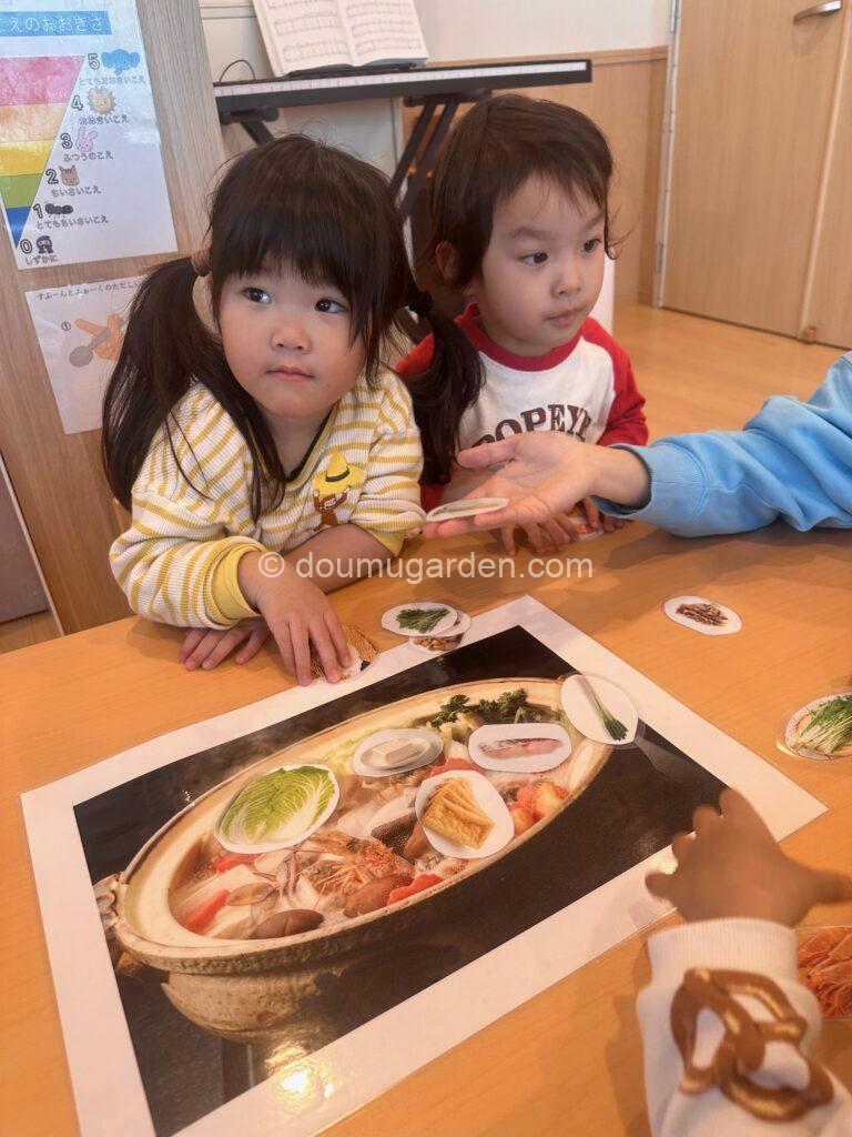 今月は寒くなってきたので、「お鍋を作ろう!」という題材で食育活動を行いました!