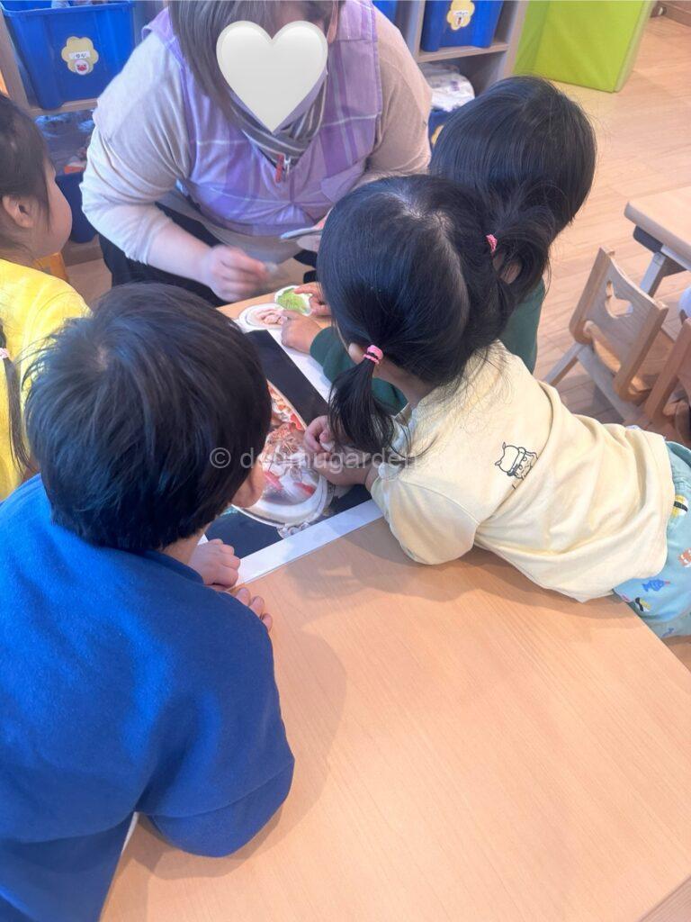 「これはなに~」とさまざまな具材の名称を確認しながら、みんな夢中になって取り組んでいました!
