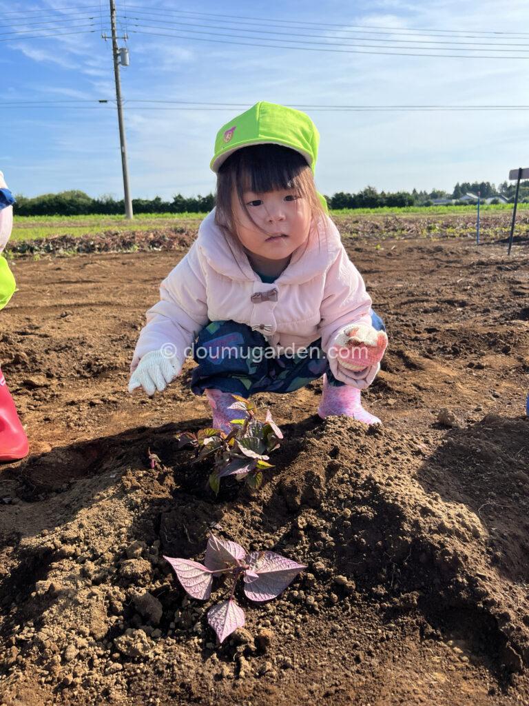 先月、ぞう組さんたちはバスに乗ってお芋ほり遠足に行きました!