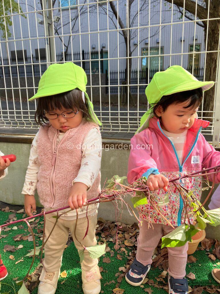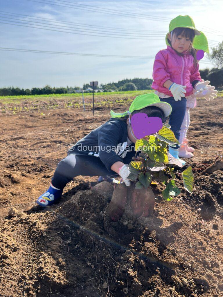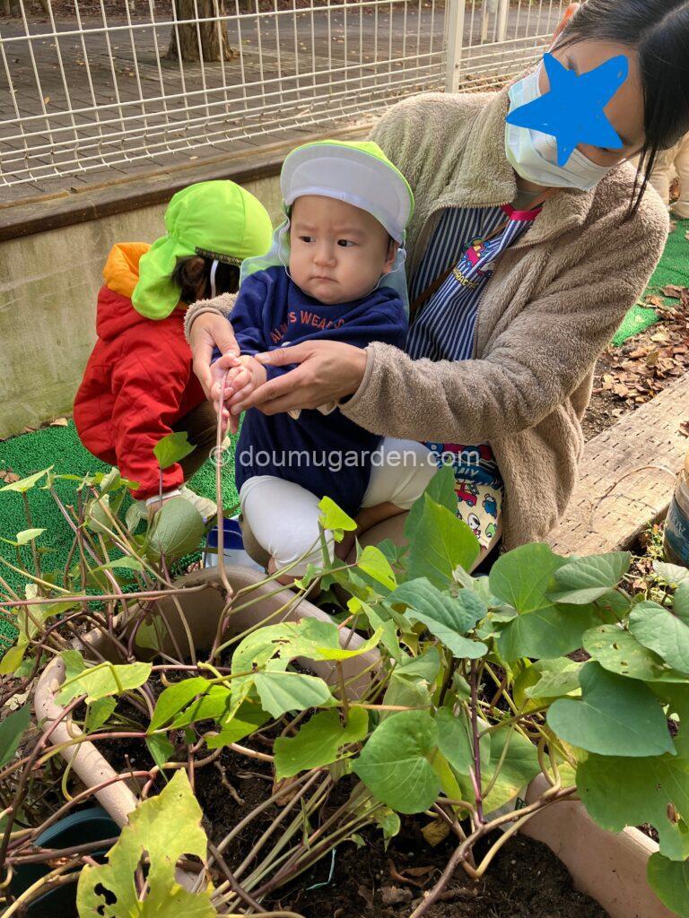 お留守番をしていたひよこ組さん、うさぎ組さんはお庭に植えたお芋を掘りました😆😆