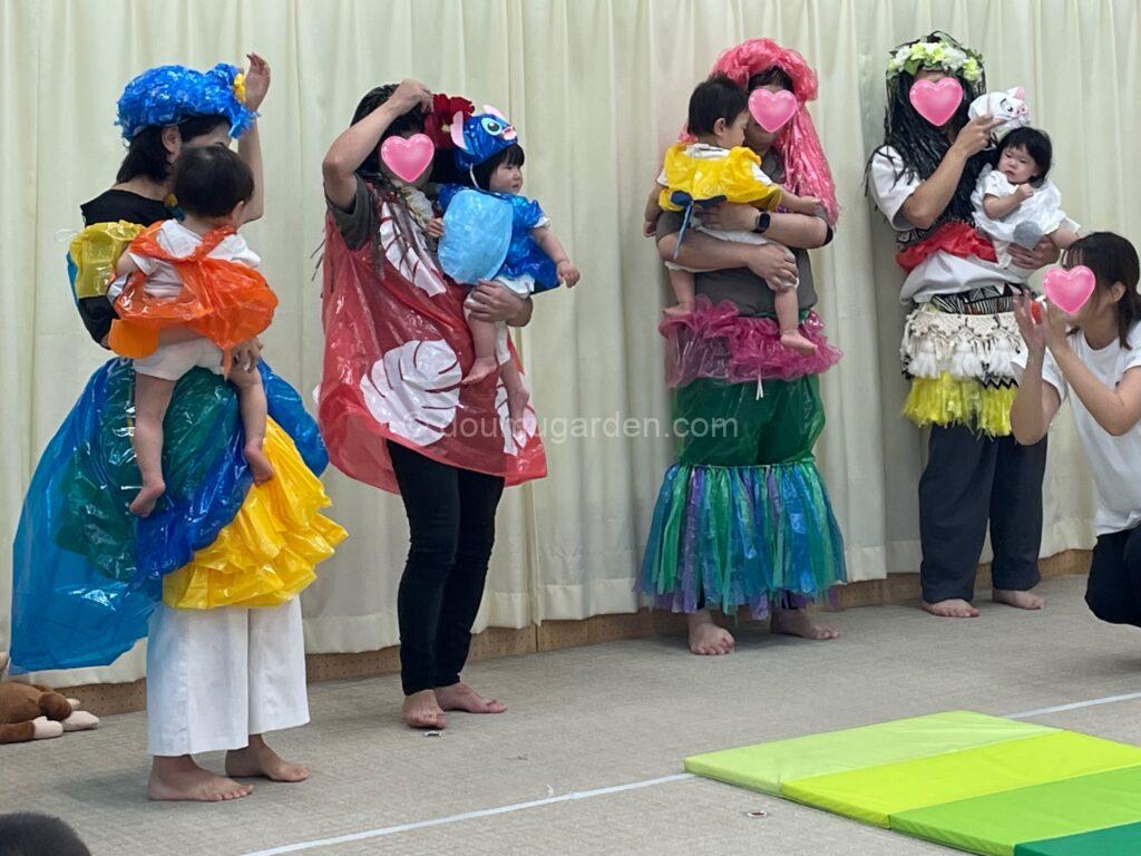 パパがメインとなり、ディズニーの海のキャラクターに変身!!0歳児さん、お着換え嫌がらずに頑張りました。最後は親子でランウェイを歩いてファッションショー!