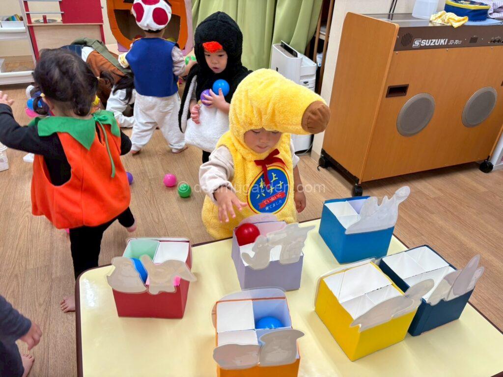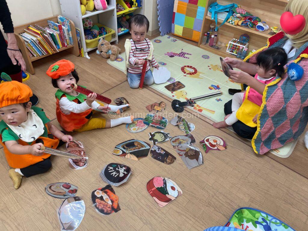 数日前から保育園にも遊びに来ていたのでみんな怖がることなくお菓子を受け取っていました(笑)