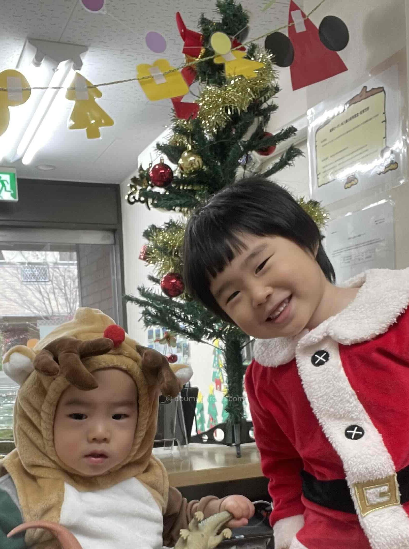 今日は待ちに待ったクリスマス会!園内もツリーや手作りリースでキラキラ華やかな雰囲気に包まれました。