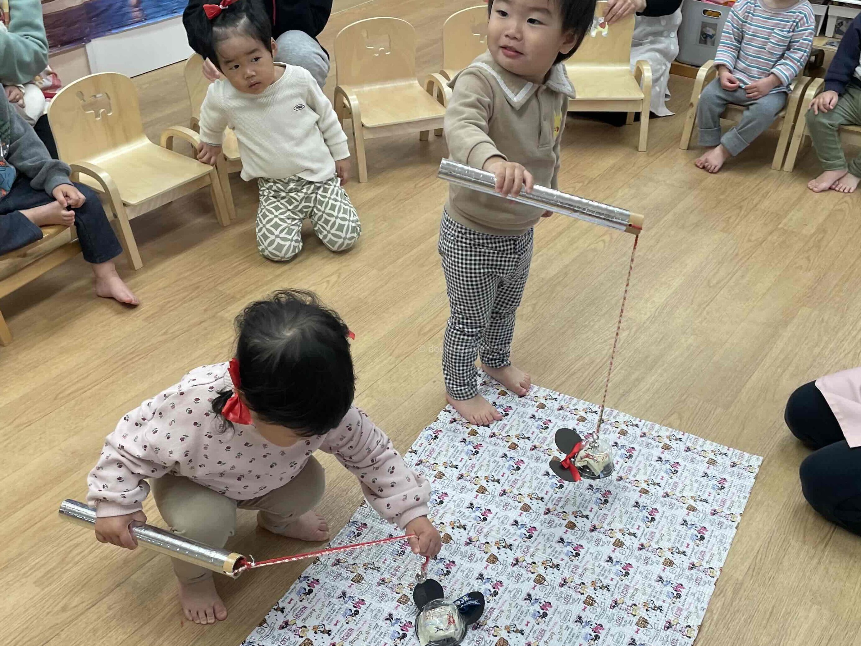 自分たちで作った楽器で、ジングルベルを合奏したり