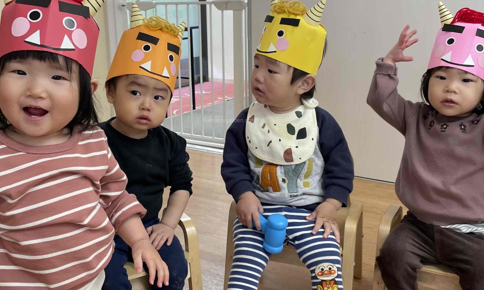 こんにちは! 2月3日節分の日に、節分会を行いました。その様子をお伝えします。 今日に向けて、各クラスで鬼のお面を作って準備してきました。自分で好きな色を塗ったり貼ったり、 髪の毛を毛糸で表現したり、個性豊かな可愛い小鬼 …